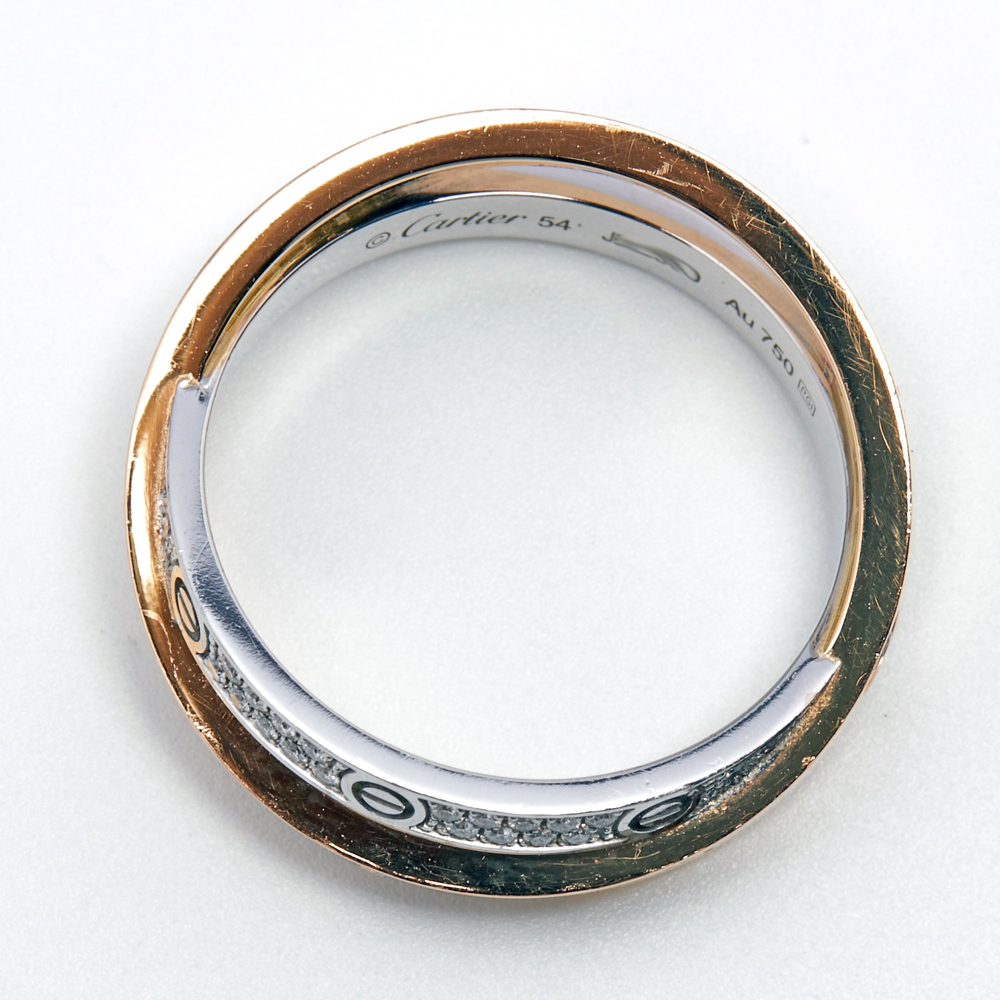 Versatile and sophisticated, this double-band ring can be worn alone as a captivating statement piece or paired with other rings for a layered, personalized look. A true expression of Cartier craftsmanship, it embodies timeless elegance, passion, and the promise of lasting bonds.