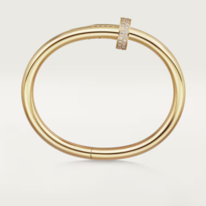 Carefully set diamonds accent the bracelet’s iconic silhouette, adding refined brilliance without diminishing its bold, minimalist character.• Silhouette & Proportions