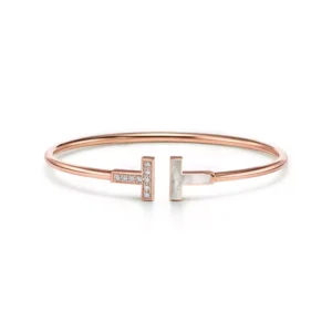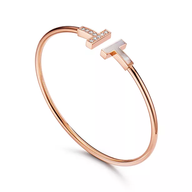Tiffany T Wire Bracelet in Rose Gold with Diamonds and Mother-of-pearl