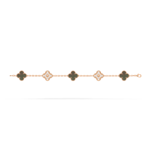This bracelet features five Vintage Alhambra motifs, evenly spaced along the chain. The symmetrical layout creates a balanced and refined rhythm on the wrist, highlighting the purity and consistency of the original design.