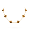 The Vintage Alhambra necklace features ten signature four-leaf clover motifs crafted from natural materials and framed by delicate 18K gold beaded edges. This iconic design represents luck, elegance, and timeless craftsmanship.