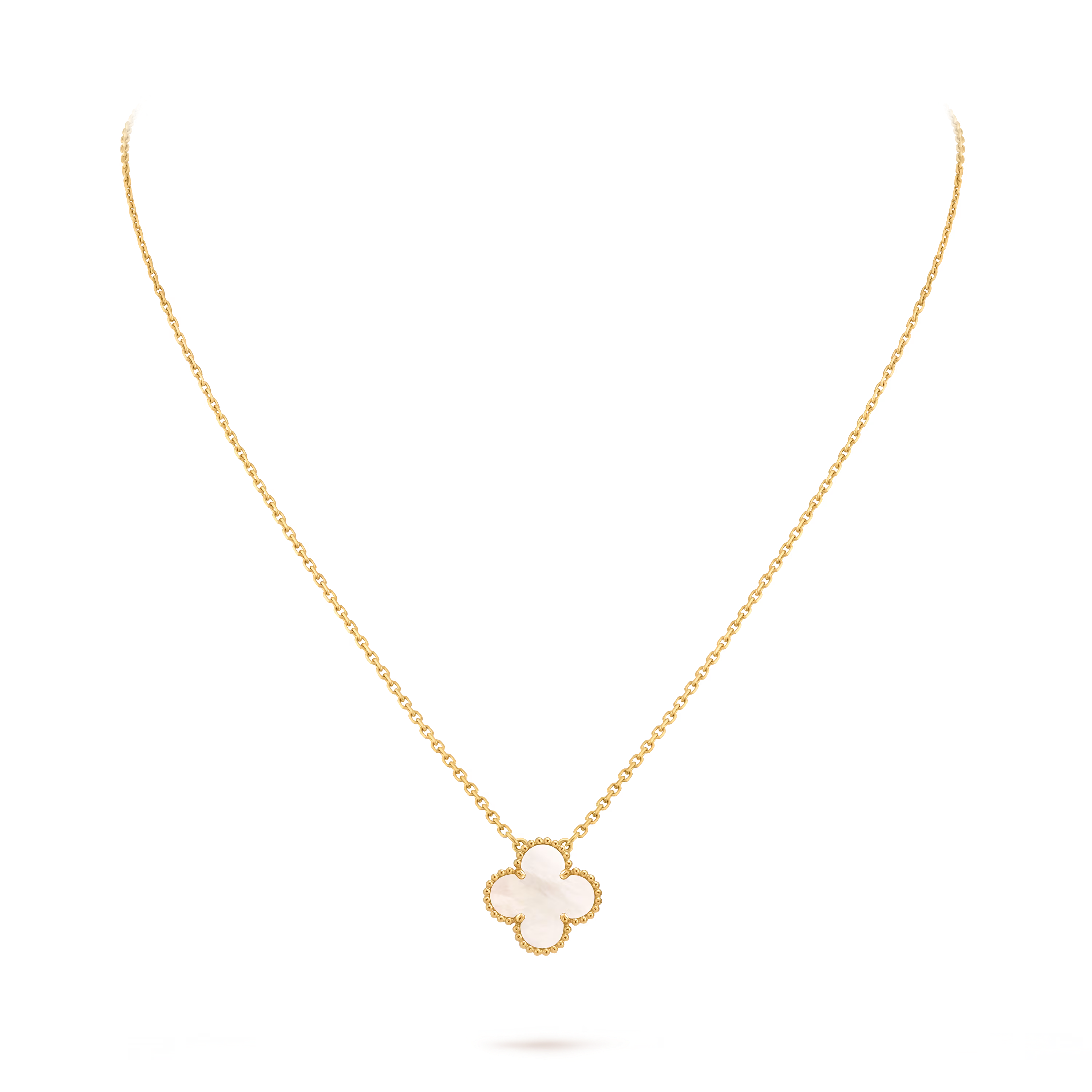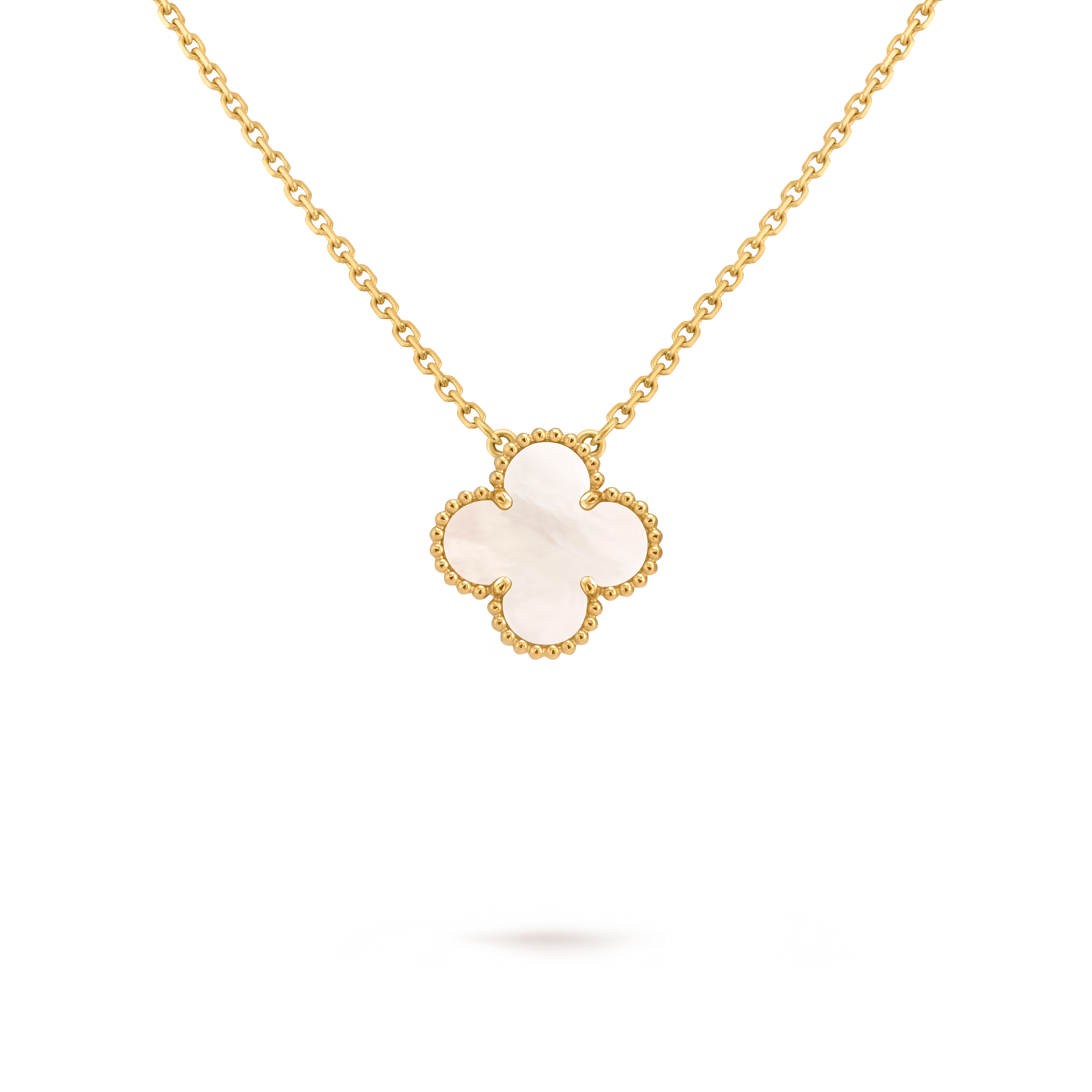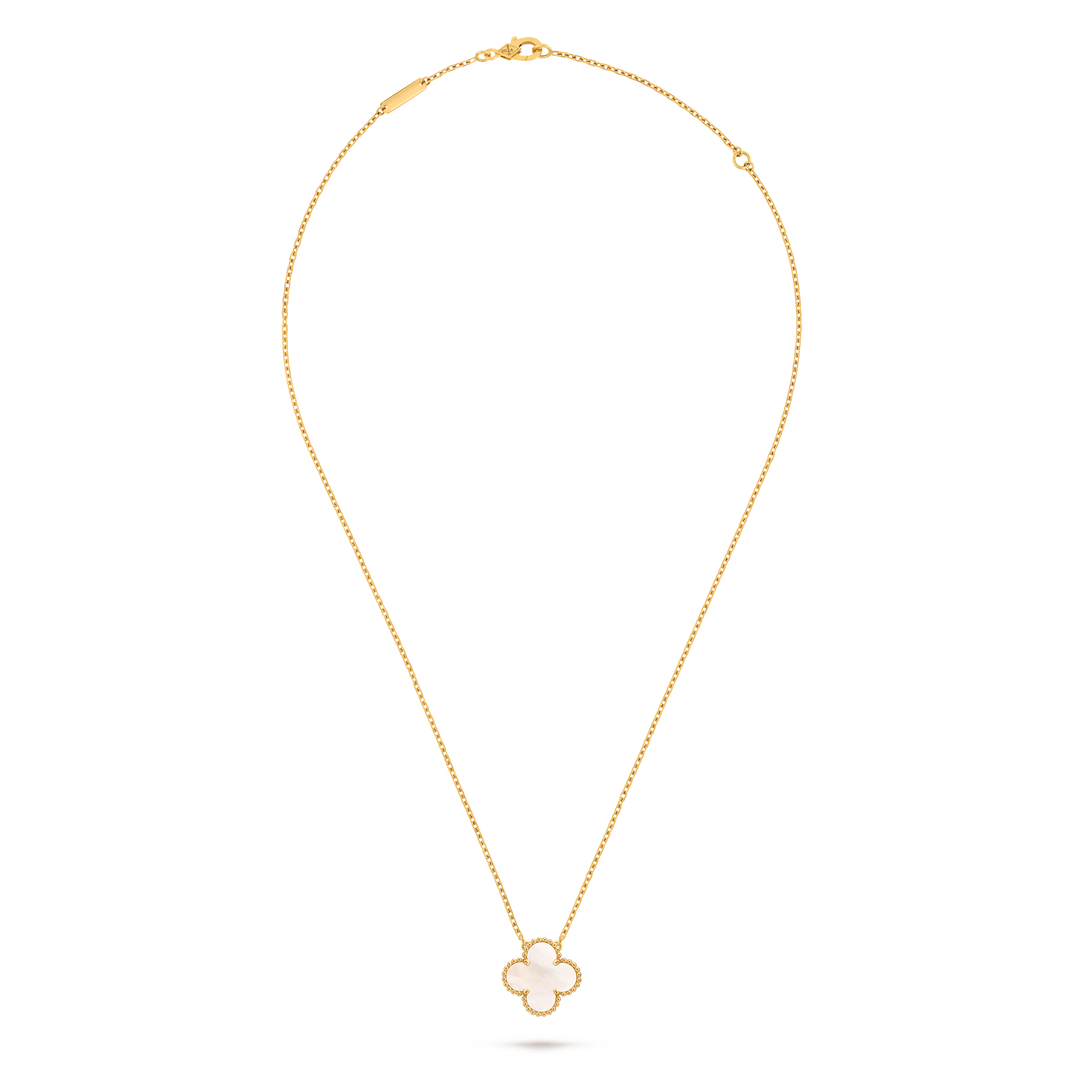 Perfectly proportioned and instantly recognizable, the pendant features the classic Alhambra shape—soft curves, balanced symmetry, and an aura of understated sophistication. Each motif is carefully selected and crafted to highlight the natural beauty of its material.