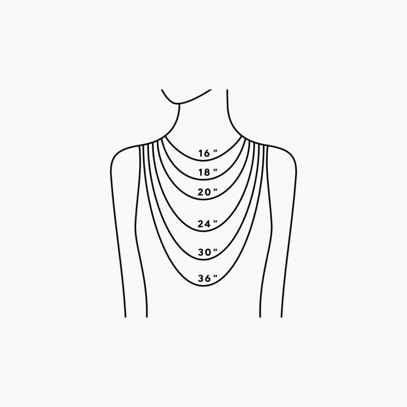 Necklaces vary by chain length. The circumference of your neck and size of the pendant will impact how your necklace sits on its own and with other styles.