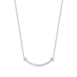 Bright, modern, and effortlessly elegant, the Tiffany T Medium Smile Pendant with Diamonds captures the confident, uplifting spirit of the Tiffany T collection. Its signature curved bar creates a refined “smile” silhouette — a symbol of optimism, clarity, and contemporary style.