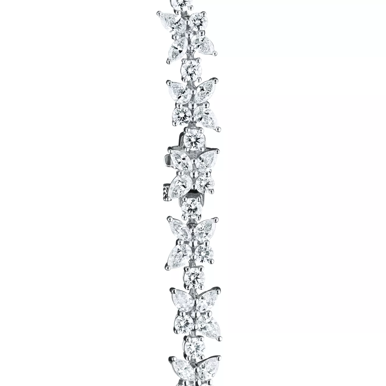 Crafted in precious metal, the bracelet features meticulously matched diamonds that are hand-set to achieve exceptional symmetry and brilliance. Each cluster is engineered with precision, demonstrating Tiffany’s mastery of diamond craftsmanship and attention to detail.